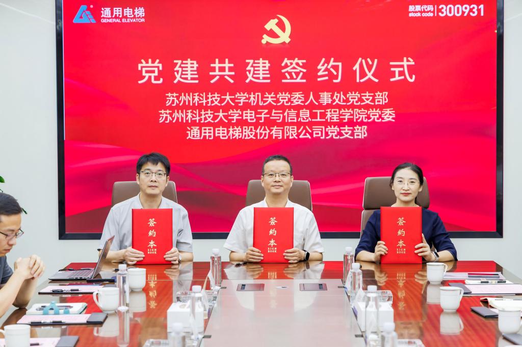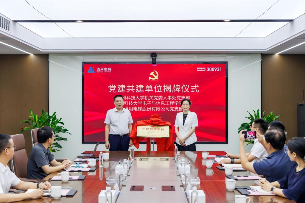 活动伊始,我校一行参观了通用电梯和苏州堡威技术有限公司的主要产品。座谈会上,通用电梯技术研发中心总经理顾月江、苏州堡威技术有限公司总裁覃新林分享了企业在技术创新与产业布局方面的进展。核心环节中,校企围绕“访企拓岗”与产学研合作深入交流,并举行三方党建共建协议书签约仪式,徐本连、伯洁与通用电梯党支部副书记张建林共同签署协议。顾菊平与徐志明为“党建共建单位”揭牌,标志着校企在党建引领下的深度合作正式启动。