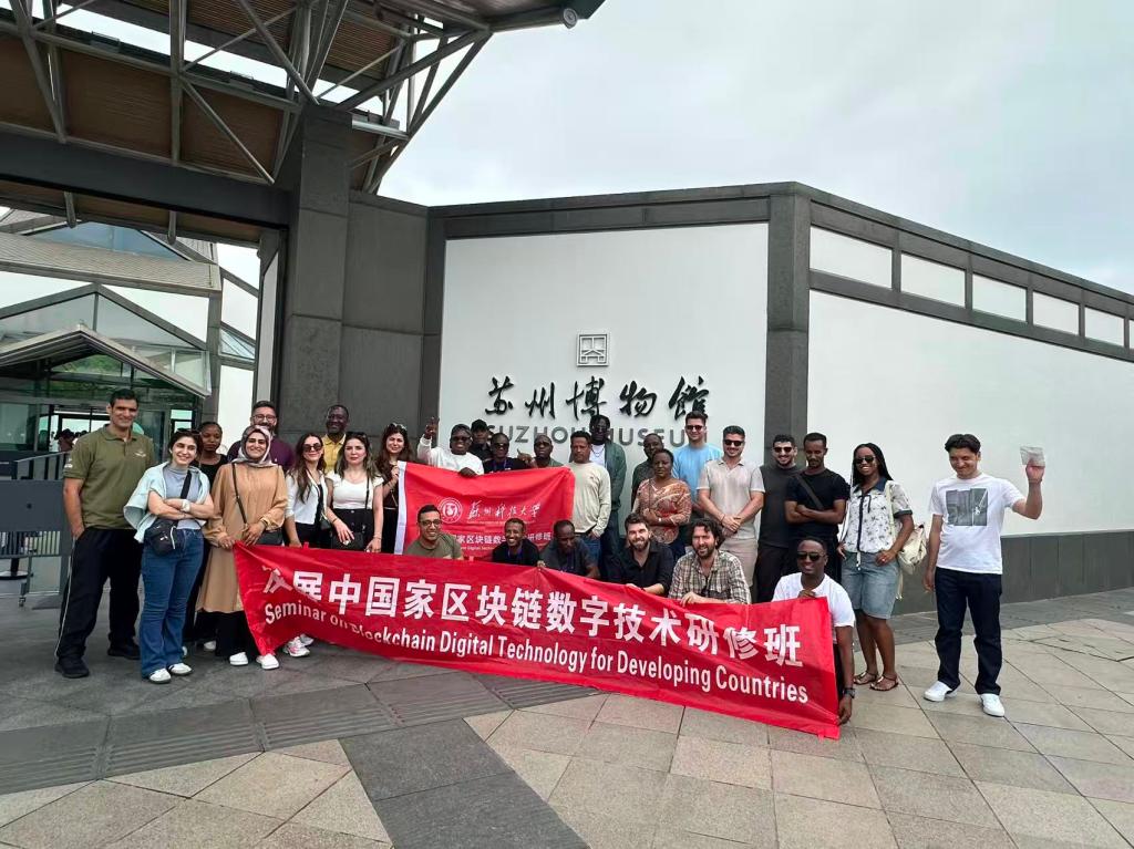本次培训班除课堂教学外,还组织学员实地考察了苏州集成电路创新中心、太湖光子中心、苏州视源电子科技有限公司等科研机构与企业,亲身体验我国在区块链硬件技术、光子通信、智能显示等领域的创新成果;走访了海康威视等知名科技企业,深入了解区块链与人工智能、大数据等技术融合应用的最新进展;参观了上海科技馆、上海数智体验馆、苏州工业园区智联基础设施等场所,感受数字技术在智慧城市、科教文化等领域的实践成效。学员们还体验了苏州博物馆、平江路历史文化街区、镇湖刺绣馆等人文活动,领略中国传统文化与现代数字文明交融的魅力。