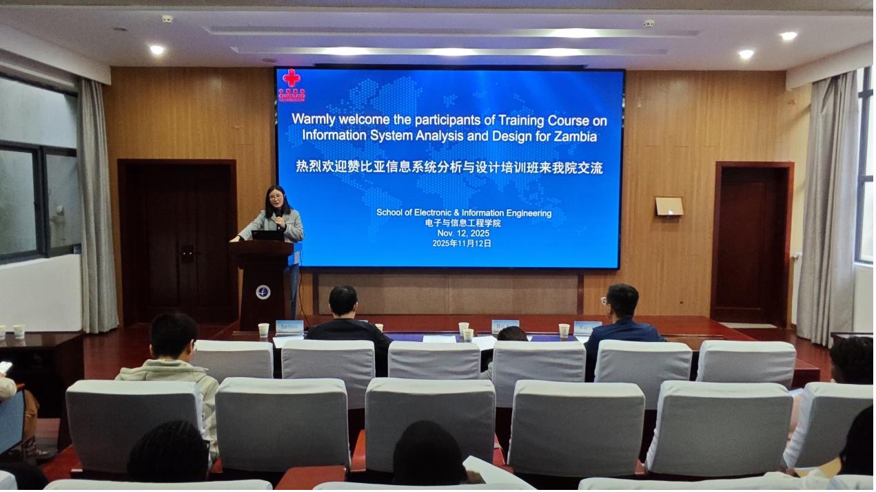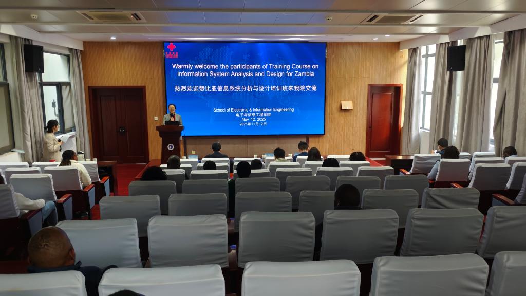 11月12日下午,由商务部援外培训项目支持的“赞比亚信息系统分析与设计培训班”国际交流座谈会在我校电子与信息工程学院A108会议室成功举行。电子与信息工程学院党委副书记(主持工作)伯洁、院长吴宏杰,国际合作交流处留学生科科长徐力,科技产业处陈志辉老师,学院教师代表及培训班全体赞比亚学员参会。会议由电子与信息工程学院院长助理孙佳惟主持。
