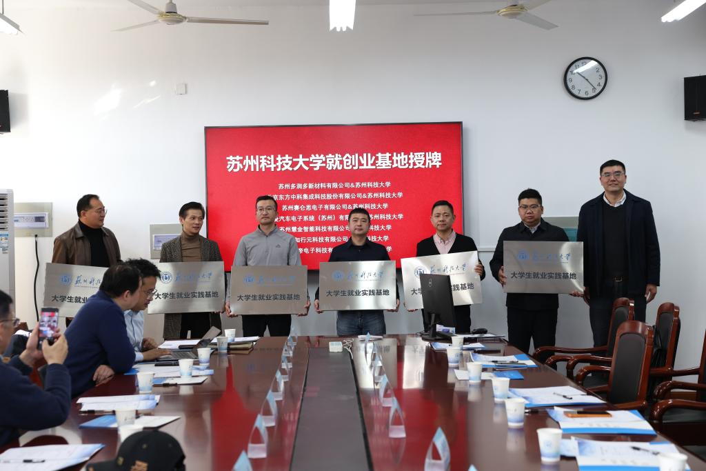 活动现场,章鸣为7家优秀校友企业授牌“苏州科技大学大学生就业实践基地”,学院与7家校友企业签订“产学研合作协议”,5位校友受聘为学院创新创业导师。